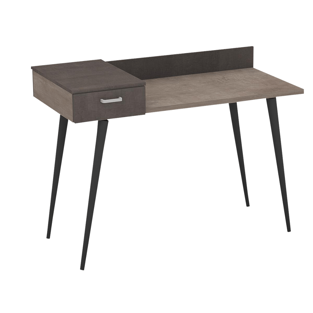 | Material | Elaborado en madera aglomerado de 25 mm la superficie del escritorio y 15 la gaveta. 100% melamínico ambos lados. Patas metálicas diagonales. |