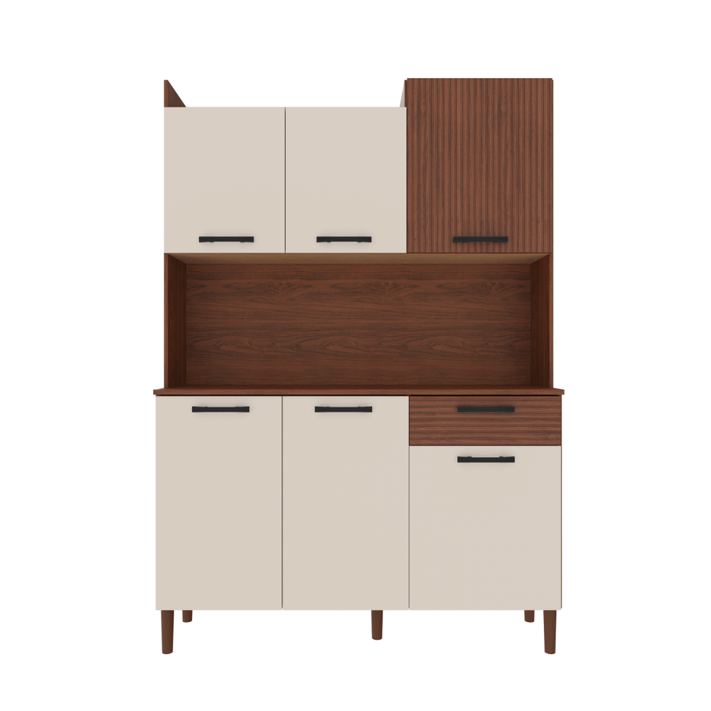 Mueble de cocina Génova 6 puertas 1 cajónMueble de cocina con diseño moderno y funcional, ideal para optimizar el espacio y mantener todo en orden. Su acabado en tonos madera y crema aporta calidez y elegancia, combinando perfectamente con diferentes estilos de decoración. Cuenta con múltiples compartimentos y gabinetes que brindan amplio espacio de almacenamiento para utensilios, electrodomésticos y alimentos. Un aliado práctico y estético para tu hogar.
