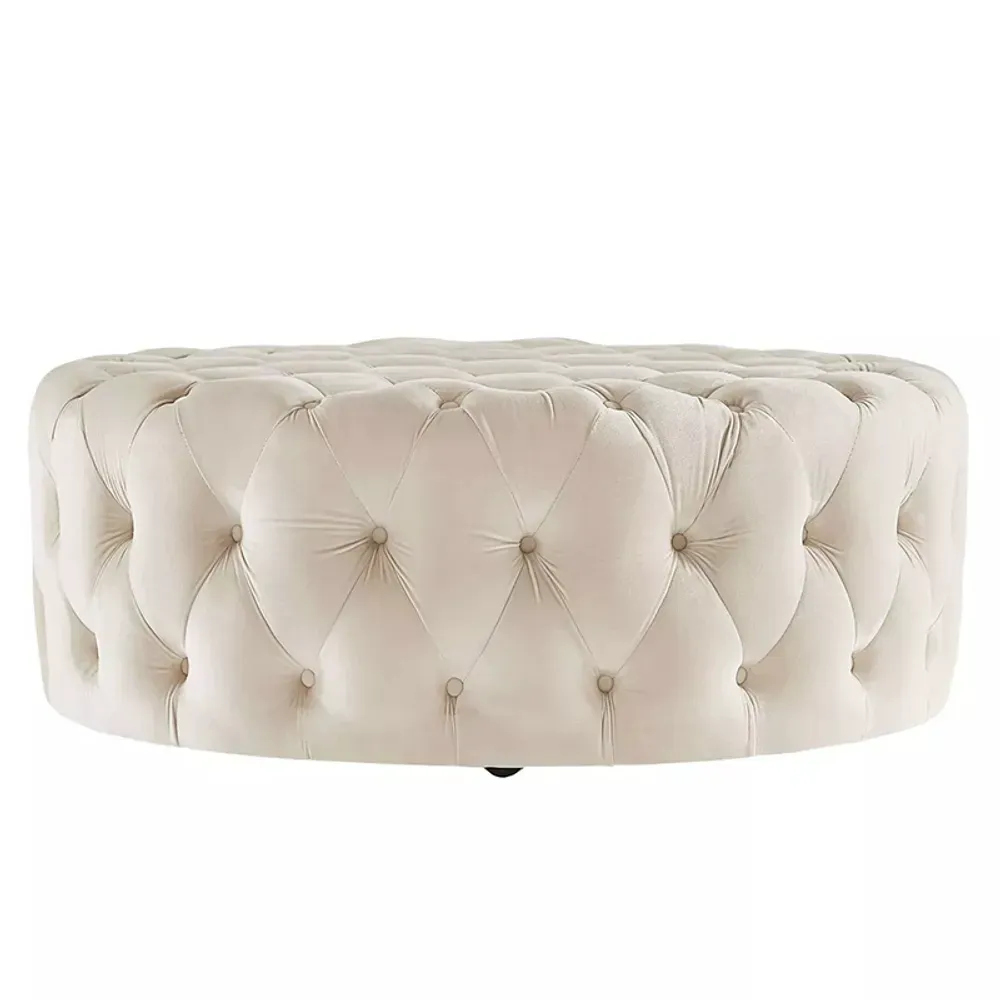 Ottoman Redondo Capitoneado Beige 90 x 40 cm