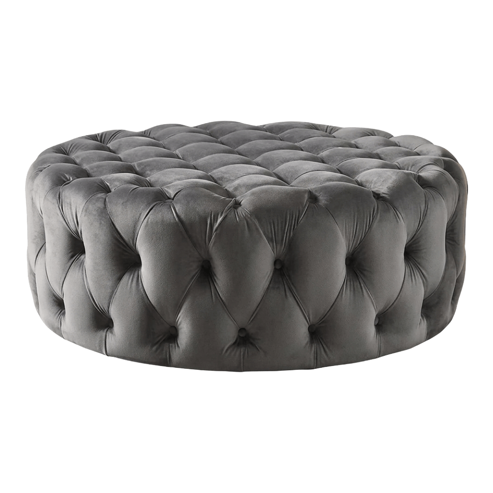 Ottoman Redondo Capitoneado Gris 90 x 40 cm