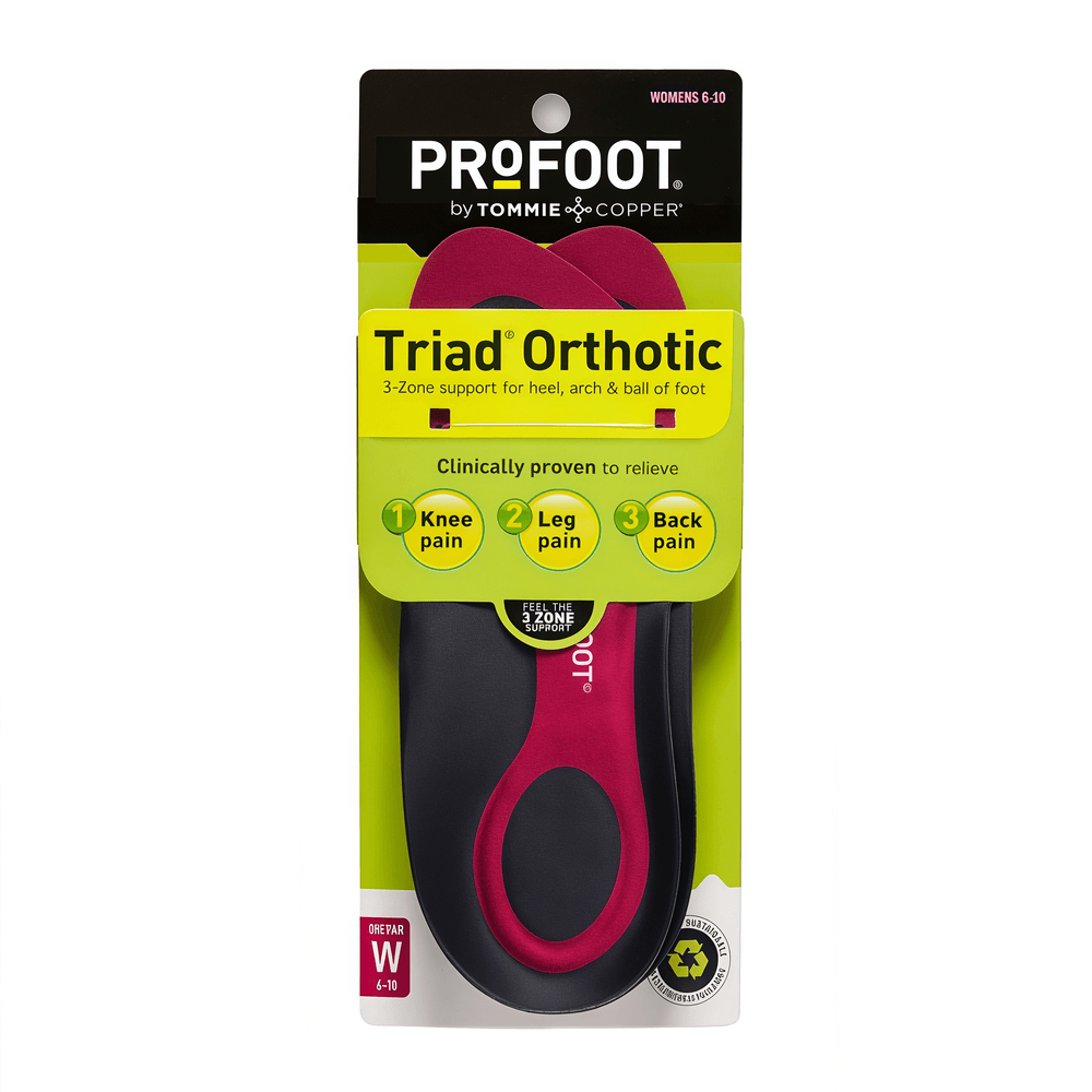 Las plantillas ortopédicas Triad le ayudarán a tener una correcta alineación del pie y a sentir alivio en la rodilla, pierna y espalda. Usted sentirá una gran diferencia desde el primer momento. La triple acción del diseño ergonómico alinea el pie y proporciona comodidad y soporte a las tres zonas del pie: talón, arco y zona delantera de la planta del pie.
