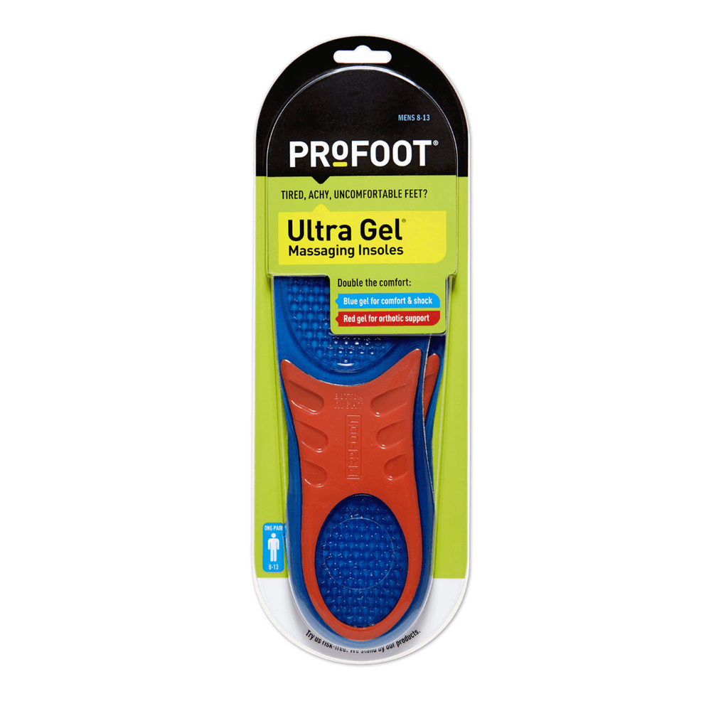 El gel rojo está diseñado para soportar el talón y el arco en una posición saludable, mientras que el gel azul brinda mayor soporte al impacto y protección. Imagine que sus pies se vuelven más cómodos cuanto más camina. Eso es lo que pasa con nuestras plantillas Ultra Gel. Con dos tipos de gel diseñados para apoyar sus arcos y amortiguar su talón, cada paso que dé será más cómodo que el anterior. Son recortables de acuerdo a la talla del usuario.