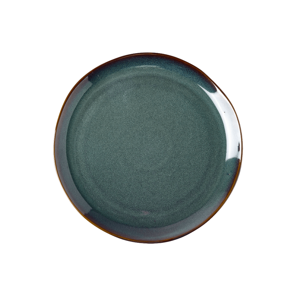 Plato tendido Modelo Esmeralda de 27 cm diseñado para servir platos principales con estilo. Su acabado decorativo en tonos esmeralda aporta elegancia a la mesa y combina fácilmente con diferentes estilos de vajilla.
