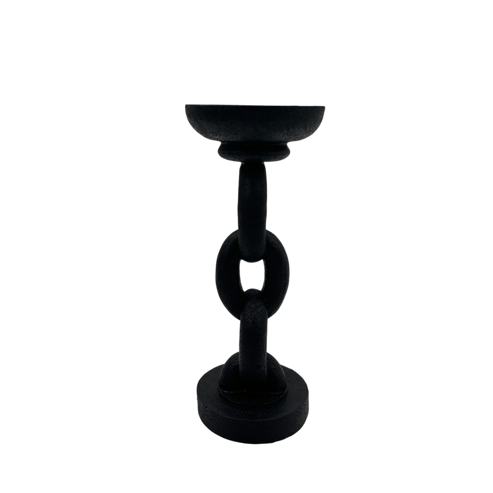 Portavela decorativo con diseño de eslabones que aporta un toque industrial y elegante.