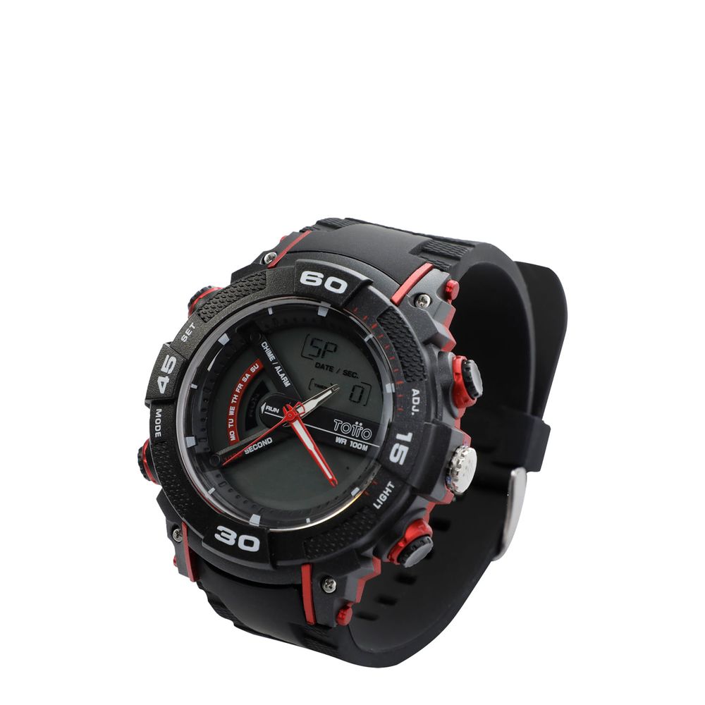 ¡Tu estilo reflejado en este reloj análogo y digital para hombre! Cuenta con pulso de silicona y es sumergible a 1 ATM. Su formato de lectura es 12/24 horas; además, tiene función de fecha, día y alarma. Incluye caja metálica reutilizable.