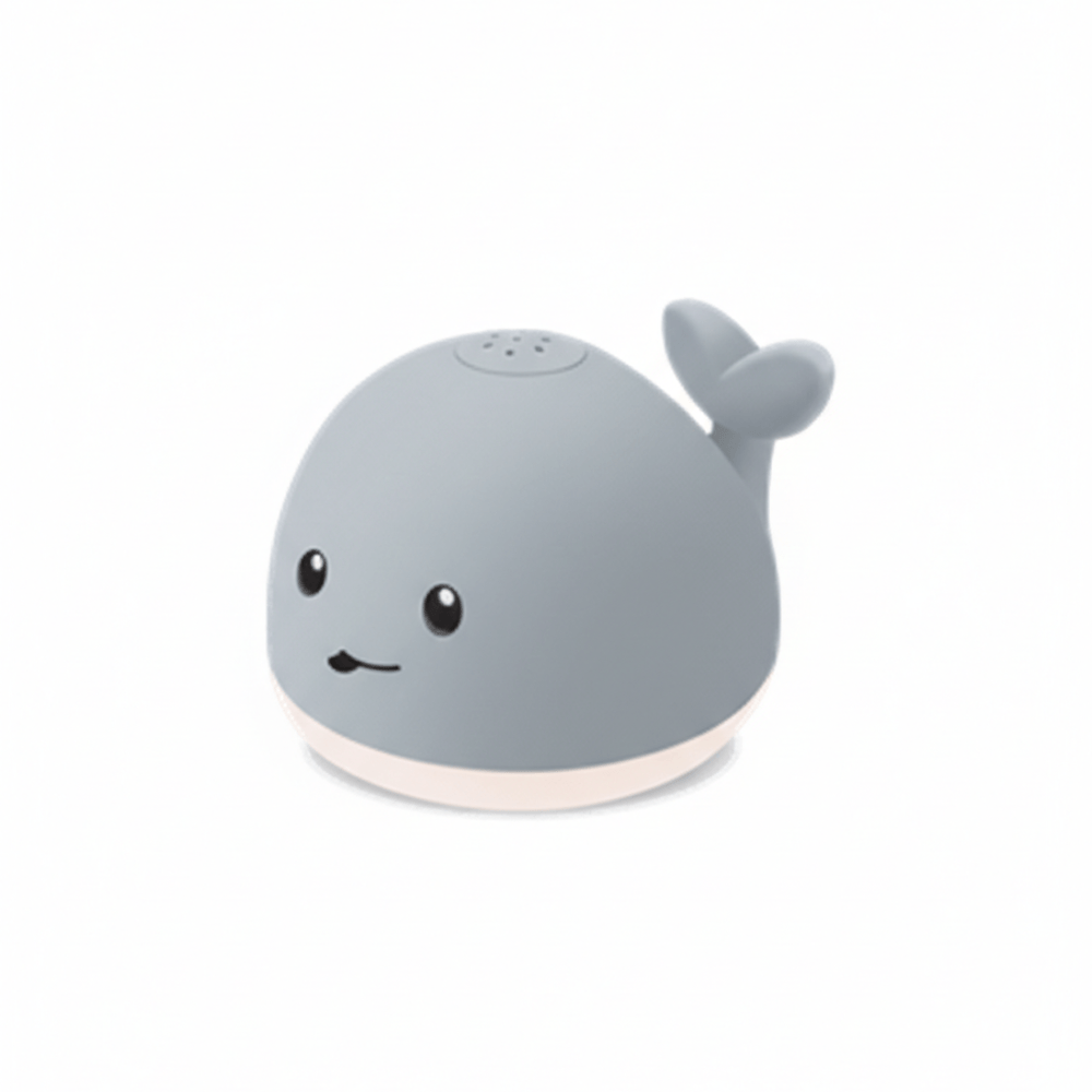 Rociador de agua modelo ballena bebé con sensor, ideal para el juego recreativo con agua. Diseñado para brindar diversión interactiva. Funciona con 4 baterías AA (no incluidas).