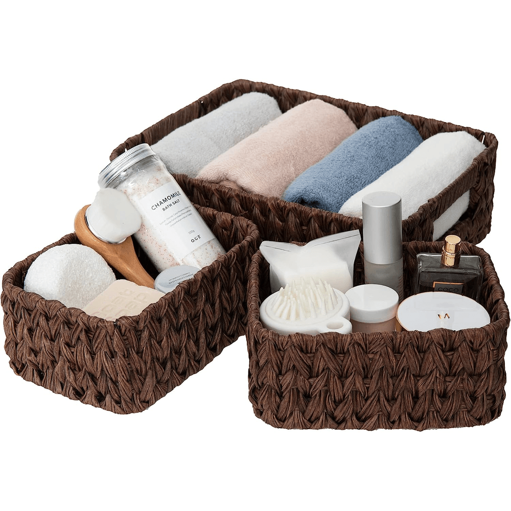 Set de 3 Cestas de Mimbre y Plástico Café Oscuro