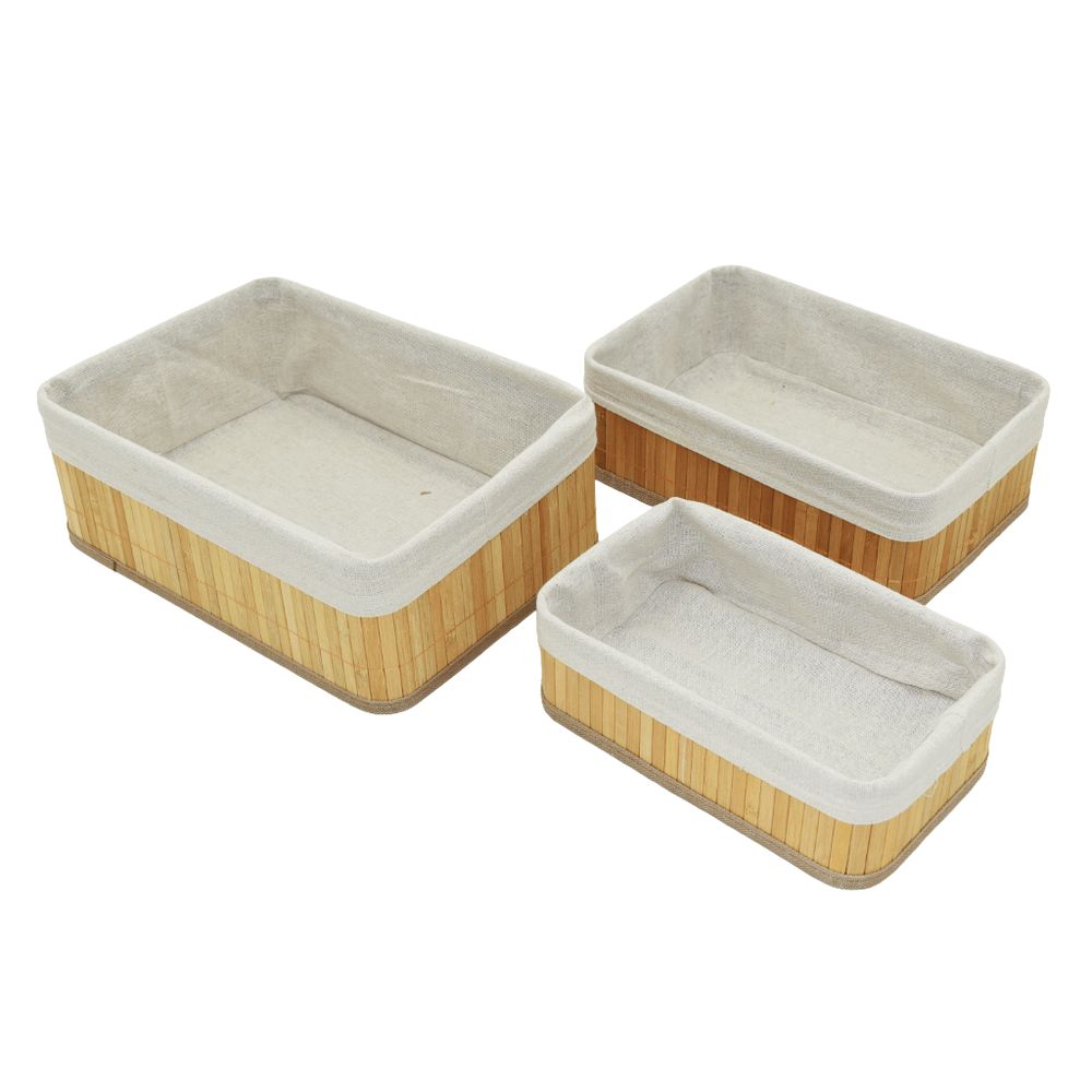 Set de 3 Cestos de Bambú con Poliéster y Metal 33 x 12 cm