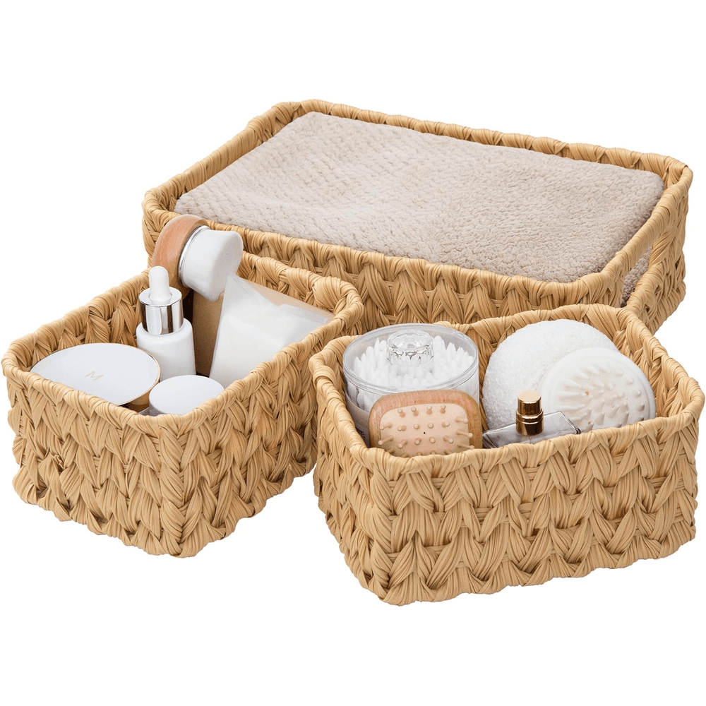 Práctico set de 3 cestas organizadoras diseñadas para ofrecer soluciones versátiles de almacenamiento. Ideales para organizar accesorios, artículos de uso diario o textiles ligeros en salas, dormitorios, baños u oficinas. Su diseño decorativo combina funcionalidad y armonía en cualquier espacio.