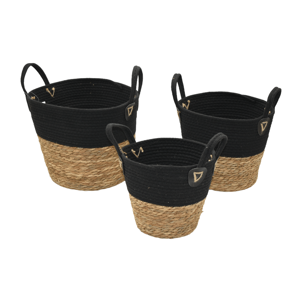 Set de 3 Piezas de Cestos de Mimbre Beige