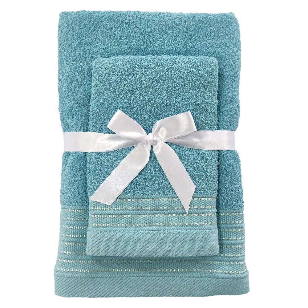 Set de Toallas Luxe x2 Baño + Tocador Color Turquesa de 460 gr