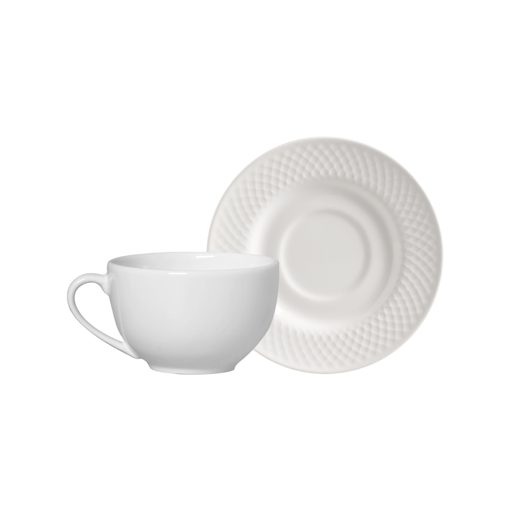 Taza de té con plato de 250 ml de la colección Satin White Basic. Ideal para disfrutar bebidas calientes.