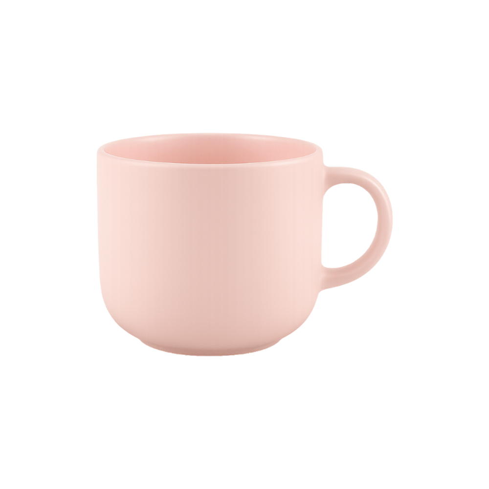 Taza de 460 ml en color rosado ideal para disfrutar café, té o bebidas calientes. Su diseño sencillo y moderno la convierte en una opción práctica para el uso diario en el hogar u oficina.