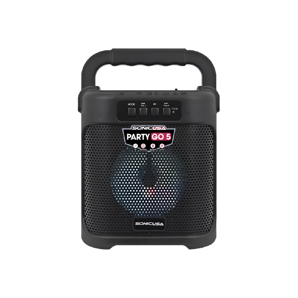 Altavoz portátil con batería recargable y luces, fácil de transportar; reproduce vía Bluetooth, USB o auxiliar y llena de energía tus fiestas.