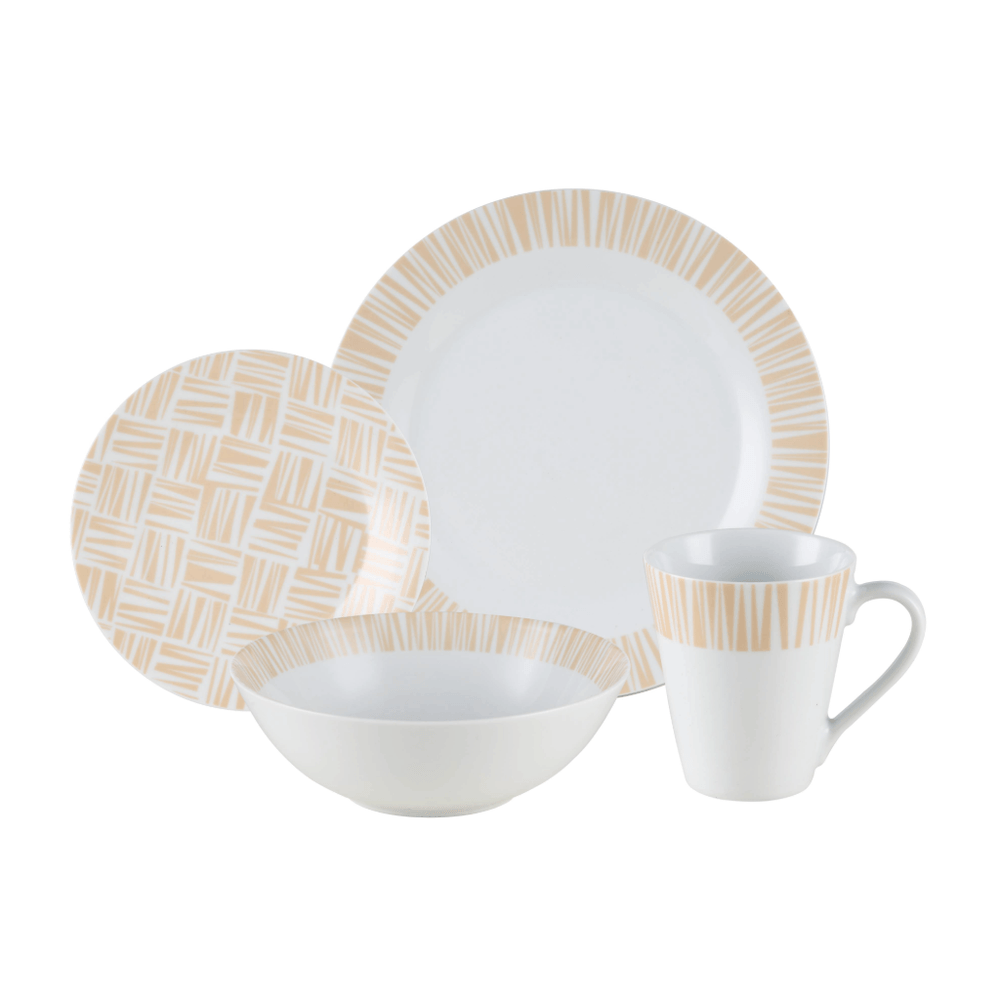 Vajilla de 16 piezas en color beige, perfecta para quienes buscan un estilo neutro y elegante en la mesa. Su diseño versátil combina fácilmente con diferentes decoraciones y ambientes.