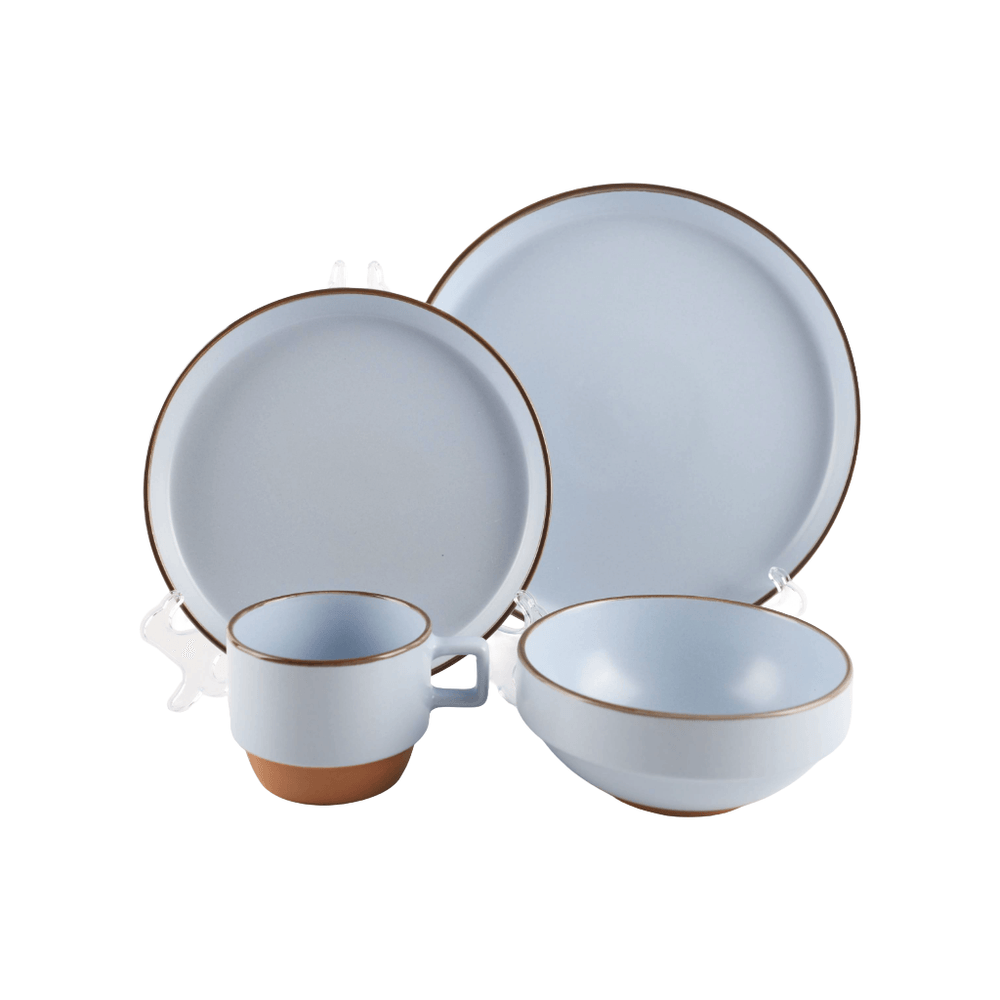 Vajilla de 16 Piezas Celeste Mate con Base Marrón