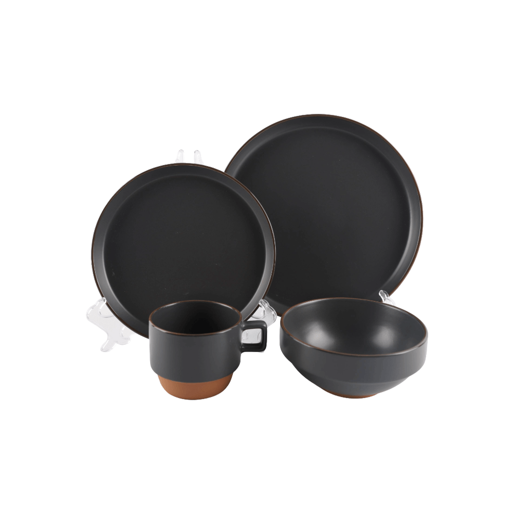 Vajilla de 16 Piezas Gris Mate con Base Marrón
