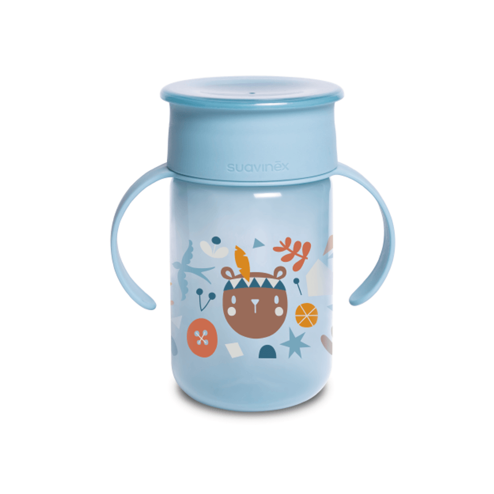 Taza de Aprendizaje 360º con disco antiderrame para beber desde cualquier parte del borde sin que se moje.